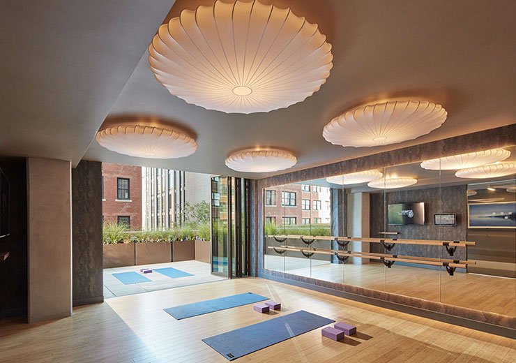 The amenities on the tower’s 32nd floor Sky Club are focused on dining and entertaining with incomparable panoramic views of brownstone Brooklyn, the Manhattan skyline, the East River, the Statue of Liberty, and New York Harbor. Residents can host lively dinner parties or intimate wine tastings in the private dining room, which features a demonstration kitchen and behind-the-scenes catering and prep kitchen.